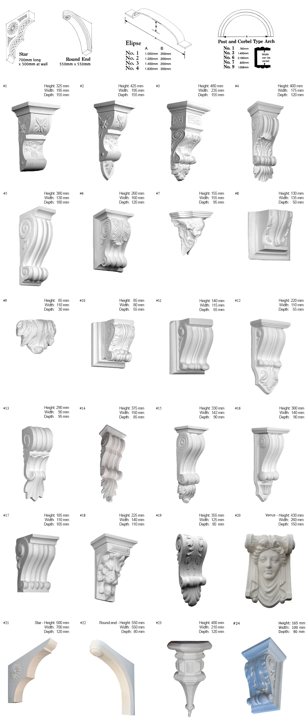 Corbels add interest and elegance to any opening or beam, whether relatively plain in a modern setting, or highly ornamental to suit older property's architecture. These are usually used under Arches or Arch ends. - Arch ends are easily installed to create the look of an arch.